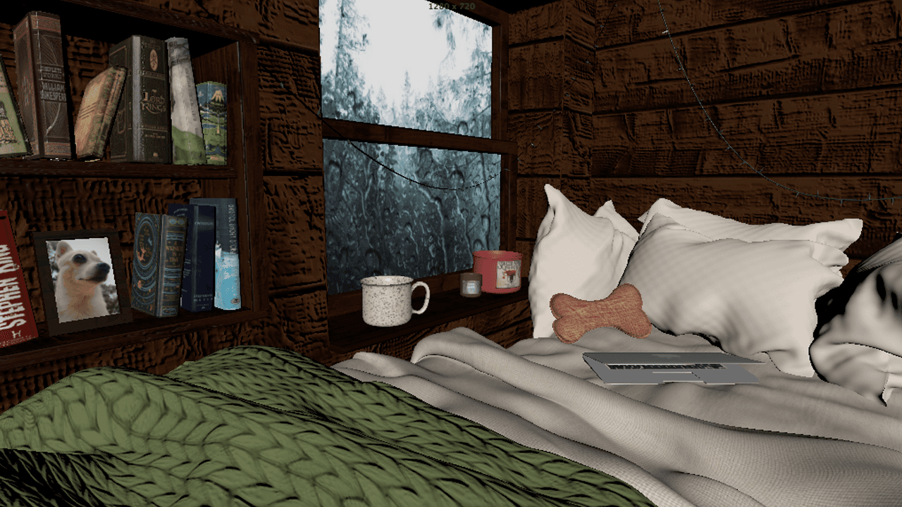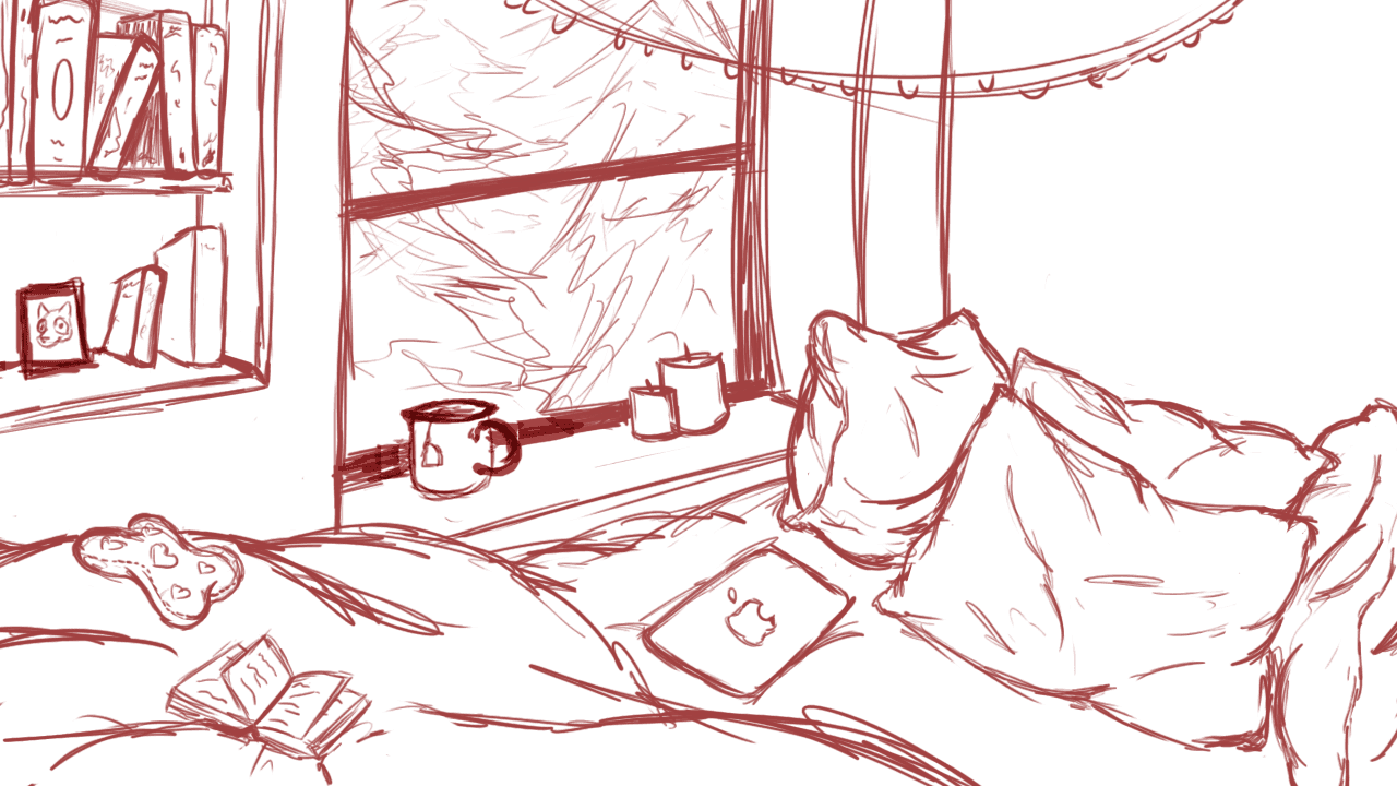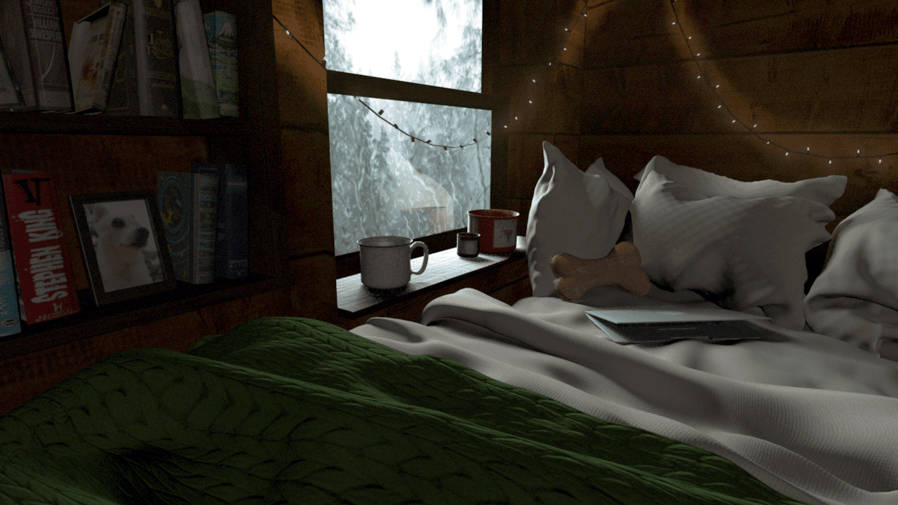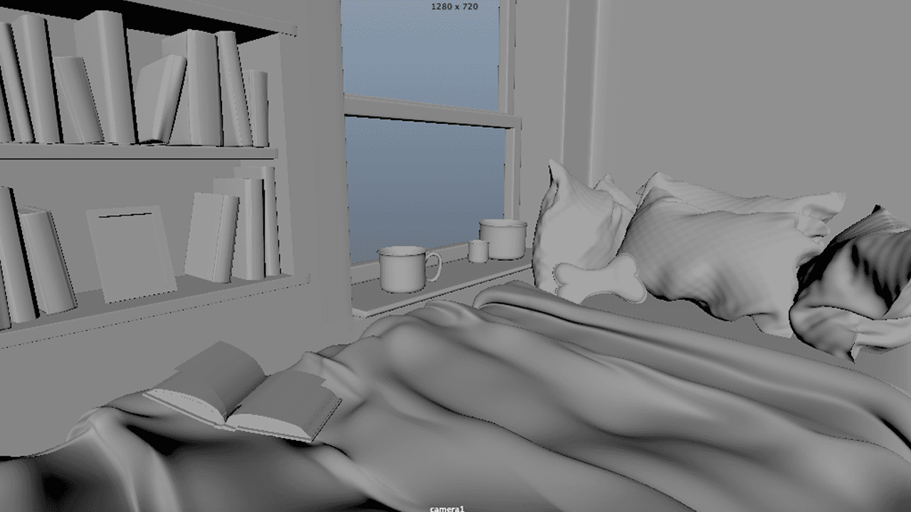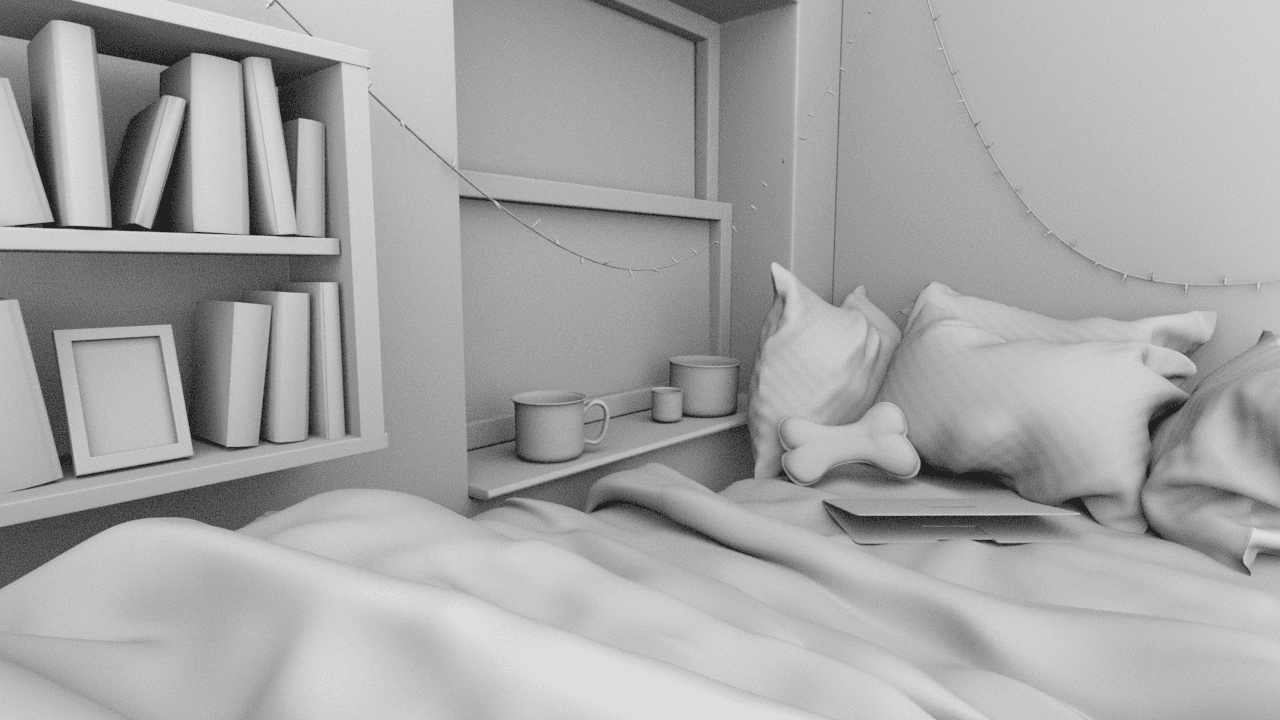 I'm definitely no professional when it comes to 3D modeling, but I dabbled in it a tiny bit during school. My goal for this was to model my ideal bedroom scene which was a cozy bed pushed up to a rainy window with some good books, a cup of coffee, and warm string lights.